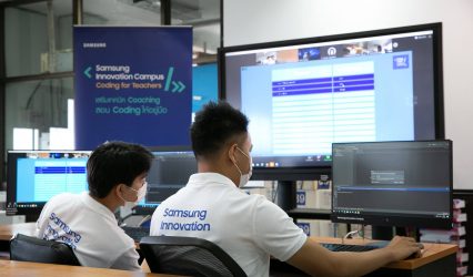 ครู-อาจารย์ ซัมซุงจัดเวิร์กชอปออนไลน์ “เสริมเทคนิค Coaching สอน Coding ให้อยู่มือ” หนุนครูจัดกระบวนการเรียนรู้ สู่การพัฒนาทักษะดิจิทัลเด็กไทยในภาคการศึกษาใหม่ EZ Webmaster May 18, 2021 บริษัท ไทยซัมซุง อิเลคโทรนิคส์ จำกัด จัดการอบรมเชิงปฏิบัติการ “Samsung Innovation Campus – Coding for Teachers เสริมเทคนิค Coaching สอน Coding ให้อยู่มือ” เดินหน้าถ่ายทอดองค์ความรู้เรื่องโค้ดดิ้ง และ Computational Thinking มุ่งส่งเสริมและพัฒนาศักยภาพของครูไทยเพื่อให้จัดการเรียนการสอนในห้องเรียนได้อย่างสัมฤทธิ์ผล โดยได้รับเสียงตอบรับที่ดีจากครูผู้สอนวิชาวิทยาการคำนวณระดับชั้นมัธยมศึกษาตอนต้น กว่า 517 โรงเรียนทั่วประเทศที่สนใจสมัครเข้าร่วมโครงการฯ…