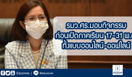 นักเรียน รมว.ศธ.มอบกิจกรรมก่อนเปิดภาคเรียน 17-31 พ.ค. ทั้งแบบออนไลน์-ออฟไลน์ EZ Webmaster May 6, 2021 เมื่อวันที่ 6 พฤษภาคม 2564 ที่ผ่านมา รัฐมนตรีว่าการกระทรวงศึกษาธิการ (รมว.ศธ.) นางสาวตรีนุช เทียนทอง เป็นประธานการประชุมหารือแนวทางการเตรียมความพร้อมรับการเปิดภาคเรียน ปีการศึกษา 2564 พร้อมด้วยนางสาวอรพินทร์ เพชรทัต เลขานุการรัฐมนตรีว่าการกระทรวงศึกษาธิการ โดยมีผู้บริหารกระทรวงศึกษาธิการเข้าร่วม…