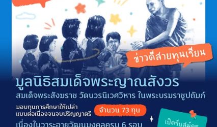 ทุนดีดีนักเรียน ทุนวชิรญาณสังวร ทุนการศึกษาแบบให้เปล่าต่อเนื่องจนจบปริญญาตรี จำนวน 73 ทุน EZ Webmaster July 18, 2025 มูลนิธิสมเด็จพระญาณสังวร สมเด็จพระสังฆราช วัดบวรนิเวศวิหาร ในพระบรมราชูปถัมภ์ มอบทุนวชิรญาณสังวร เป็นทุนการศึกษาแบบให้เปล่าต่อเนื่องจนจบปริญญาตรี แก่นักเรียนและนักศึกษาไทยที่ขาดแคลนทุนทรัพย์ทั่วประเทศ Flash ทุน : ทุนวชิรญาณสังวร (ดาวน์โหลดไฟล์ได้ที่ https://bit.ly/4lbtSXy) มูลนิธิสมเด็จพระญาณสังวร สมเด็จพระสังฆราช วัดบวรนิเวศวิหาร ในพระบรมราชูปถัมภ์…