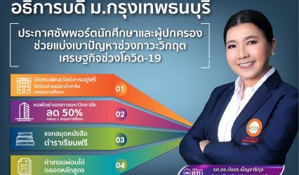 Blogนักศึกษา อธิการบดี ม.กรุงเทพธนบุรี “งัดมาตรการช่วยนักศึกษาและผู้ปกครอง” แบ่งเบาปัญหา ช่วงวิกฤตโควิด-19 tui sakrapee April 25, 2021 อธิการบดี ม.กรุงเทพธนบุรี “ประกาศ ซัพพอร์ตนักศึกษาและผู้ปกครอง” ช่วยแบ่งเบาปัญหา ช่วงภาวะ วิกฤต เศรษฐกิจช่วงโควิด-19 จากกรณีนายเอนก เหล่าธรรมทัศน์ รมว.การอุดมศึกษา วิทยาศาสตร์ วิจัยและนวัตกรรม (อว.) ขอความร่วมมือมหาวิทยาลัยทั้งภาครัฐและภาคเอกชนให้ลดค่าเล่าเรียนและค่าใช้จ่ายอื่นๆ ให้นิสิตนักศึกษา เพื่อลดความลำบากทางเศรษฐกิจให้แก่ครอบครัวเยาวชนกว่า 2.2 ล้านคน ที่อยู่ในการกำกับดูแลของกระทรวง อว.เพื่อลดผลกระทบจากโรคไวรัสโควิด-19นั้น เมื่อวันที่ 24 เม.ย. รศ.ดร.บังอร เบ็ญจาธิกุล อธิการบดีมหาวิทยาลัยกรุงเทพธนบุรี (มกธ.) หรือBANGKOKTHONBURI UNIVERSITY (BTU) กล่าวว่า มหาวิทยาลัยกรุงเทพธนบุรีขอเป็นส่วนหนึ่งช่วยเหลือลดค่าใช้จ่ายให้แก่นักศึกษาที่ประสบปัญหาจากการแพร่ระบาดของโรคไวรัสโควิด โดยทางมกธ.ได้เปิดหอพักสวัสดิการของทางมหาวิทยาลัยกรุงเทพธนบุรีให้นักศึกษาอยู่ฟรีไม่ต้องจ่ายแม้ค่าน้ำค่าไฟ ตลอดการศึกษา ในส่วนหอพักเช่าของทางมหาวิทยาลัยฯนั้น ทางมกธ.ลดค่าเช่าให้ 50% ตลอด 1 เทอมการศึกษา “นอกจากสวัสดิการด้านค่าน้ำค่าไฟและหอพักฟรีแล้ว มหาวิทยาลัยยังเห็นควรดำเนินการแจกสมุดและหนังสือตำราเรียนฟรี ให้แก่นักศึกษาทุกคน นอกจากนี้ยังเปิดให้มีการผ่อนชำระค่าเทอมได้ตลอดหลักสูตรอีกทางหนึ่งด้วย…