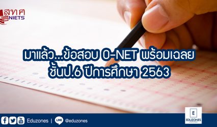 นักเรียน มาแล้ว…ข้อสอบ O-NET พร้อมเฉลย ชั้นป.6 ปีการศึกษา 2563 EZ Webmaster April 25, 2021 เนื่องด้วยทางสถาบันทดสอบทางการศึกษาแห่งชาติ (สทศ.) ได้ดำเนินการจัดการทดสอบทางการศึกษาระดับชาติขั้นพื้นฐาน (O-NET) ปีการศึกษา 2563 ของชั้นประถมศึกษาปีที่ 6 ไปเมื่อวันที่ 13 มีนาคม 2564 ที่ผ่านมานั้น ในการนี้ สทศ. ได้เผยแพร่ข้อสอบและเฉลยคำตอบ…