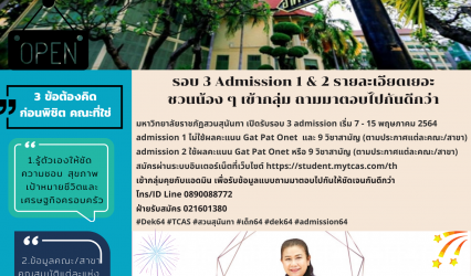 Blogนักเรียน รอบ3มาแล้ว #TCAS64วิทยาลัยโลจิสติกส์และซัพพลายเชน สวนสุนันทา เปิดรับรอบที่ 3 (Admission 1-2) แค่ 150 ที่นั่งเท่านั้น tui sakrapee April 26, 2021 วิทยาลัยโลจิสติกส์และซัพพลายเชน มหาวิทยาลัยราชภัฏสวนสุนันทา วิทยาเขตนครปฐม เปิดรับสมัครนักศึกษาใหม่ รอบที่ 3 (Admission 1-2) เริ่ม 7 พ.ค.นี้ หลักสูตรที่เปิดรับ หลักสูตรบริหารธุรกิจบัณฑิต รหัสสาขาวิชา 7321 การจัดการโลจิสติกส์…