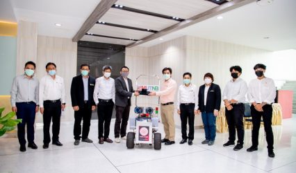 ครู-อาจารย์ มจพ. รับมอบนวัตกรรมหุ่นยนต์ไอพ่นละอองฝอย (ULV) ฆ่าเชื้อโรค และไวรัส (โควิด-19) EZ Webmaster April 24, 2021 ศ.ดร. สุชาติ เซี่ยงฉิน อธิการบดี มหาวิทยาลัยเทคโนโลยีพระจอมเกล้าพระนครเหนือ (มจพ.) พร้อมคณะผู้บริหาร รับมอบหุ่นยนต์ไอพ่นละอองฝอย (ULV) ฆ่าเชื้อโรค และไวรัส ผลงานของ รศ.ดร.ศุภชัย ตระกูลทรัพย์ทวี และ ผศ.ดร.สถาพร…