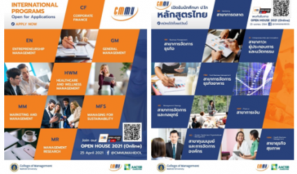 นักศึกษา CMMU ชวนร่วมงานศึกษาต่อ โท-เอก “CMMU Open House Live 2021” 25 เม.ย.นี้! EZ Webmaster April 19, 2021 วิทยาลัยการจัดการ มหาวิทยาลัยมหิดล (CMMU) ชวนผู้สนใจร่วมกิจกรรมเปิดบ้านการเรียนรู้แบบออนไลน์ เต็มรูปแบบ ในงาน “CMMU Open House Live 2021” พบกับแนวทางการศึกษาต่อ ป.โท ป.เอก 4 หลักสูตร…