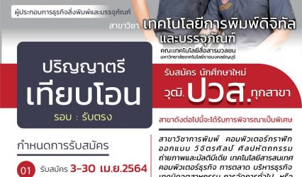 Blogนักเรียน รับตรง จบแล้วมีงานรองรับ100% เรียน “สาขาวิชาเทคโนโลยีการพิมพ์และบรรจุภัณฑ์” มทร.ธัญบุรี tui sakrapee April 19, 2021 ผู้จบปวส.ที่ต้องการศึกษาต่อปริญญาตรีหลักสูตรเทียบโอน สาขาวิชาเทคโนโลยีการพิมพ์และบรรจุภัณฑ์ มทร.ธัญบุรี กำลังเปิดรับสมัครรอบรับตรง วันนี้ – 30 เม.ย. 2564 นี้ รอบรับตรง รับสมัครออนไลน์ คลิก https://apply.rmutt.ac.th จุดเด่นของหลักสูตร 📌หลักสูตรมาตรฐานเปิดมานานกว่า…