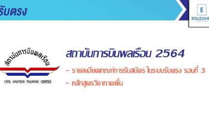 นักเรียนนักศึกษา #รับตรง64 หลักสูตรวิชาภาคพื้น สถาบันการบินพลเรือน เปิดรับสมัครรอบที่ 3 ตั้งแต่วันที่ 1 ธ.ค. 63 – 28 เม.ย. 64 EZ Webmaster April 18, 2021 สถาบันการบินพลเรือน เปิดรับสมัครบุคคลเพื่อเข้าศึกษาต่อในระดับปริญญาตรี และอนุปริญญา ประจำปีการศึกษา 2564 โดยจะเปิดรับสมัครตั้งแต่วันที่ 1 ธันวาคม 2563 – 28 เมษายน 2564 หลักสูตรที่เปิดรับสมัคร -หลักสูตรการจัดการบัณฑิต…