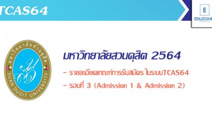 นักเรียนนักศึกษา #TCAS64 ม.สวนดุสิต เปิดรับสมัครนศ.ป.ตรี รอบที่ 3 (Admission 1-2) ตั้งแต่วันที่ 7-15 พ.ค. 64 EZ Webmaster April 18, 2021 มหาวิทยาลัยสวนดุสิต เปิดรับสมัครคัดเลือกบุคคลเพื่อเข้าศึกษาต่อในระดับปริญญาตรี รอบที่ 3 (Admission 1 & Admission 2) ประจำปีการศึกษา 2564 โดยจะเปิดรับสมัครตั้งแต่วันที่ 7-15 พฤษภาคม 2564 …