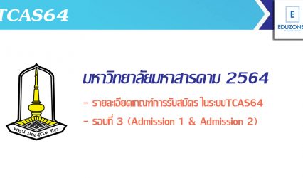 นักเรียนนักศึกษา #TCAS64 ม.มหาสารคาม เปิดรับสมัครนศ.ปตรี รอบที่ 3 (Admission 1-2) ตั้งแต่วันที่ 7-15 พ.ค. 64 EZ Webmaster April 19, 2021 มหาวิทยาลัยมหาสารคาม เปิดรับสมัครคัดเลือกบุคคลเพื่อเข้าศึกษาต่อในระดับปริญญาตรี รอบที่ 3 (Admission 1 & Admission 2) ประจำปีการศึกษา 2564 โดยจะเปิดรับสมัครตั้งแต่วันที่ 7-15 พฤษภาคม 2564…