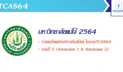 นักเรียนนักศึกษา #TCAS64 ม.แม่โจ้ เปิดรับสมัครนศ.ป.ตรี รอบที่ 3 (Admission 1-2) ตั้งแต่วันที่ 7-15 พ.ค. 64 EZ Webmaster April 18, 2021 มหาวิทยาลัยแม่โจ้ เปิดรับสมัครคัดเลือกบุคคลเพื่อเข้าศึกษาต่อในระดับปริญญาตรี รอบที่ 3 (Admission 1 & Admission 2) ประจำปีการศึกษา 2564 โดยจะเปิดรับสมัครตั้งแต่วันที่ 7-15 พฤษภาคม 2564 …