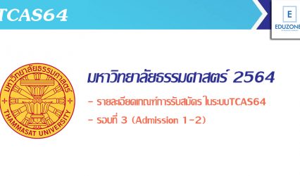 นักเรียนนักศึกษา #TCAS64 ม.ธรรมศาสตร์ เปิดรับสมัครนศ.ป.ตรี รอบที่ 3 (Admission 1-2) โดยจะเปิดรับสมัครตั้งแต่วันที่ 7-15 พ.ค. 64 EZ Webmaster March 20, 2021 มหาวิทยาลัยธรรมศาสตร์ เปิดรับสมัครคัดเลือกบุคคลเพื่อเข้าศึกษาต่อในระดับปริญญาตรี รอบที่ 3 (Admission 1 & Admission 2) ประจำปีการศึกษา 2564 โดยจะเปิดรับสมัครตั้งแต่วันที่ 7-15 พฤษภาคม 2564 …