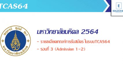 นักเรียนนักศึกษา #TCAS64 ม.มหิดล เปิดรับสมัครนศ.ป.ตรี รอบที่ 3 (Admission 1-2) ตั้งแต่วันที่ 7-15 พ.ค. 64 EZ Webmaster March 20, 2021 มหาวิทยาลัยมหิดล เปิดรับสมัครคัดเลือกบุคคลเพื่อเข้าศึกษาต่อในระดับปริญญาตรี รอบที่ 3 (Admission 1 & Admission 2) ประจำปีการศึกษา 2564 โดยจะเปิดรับสมัครตั้งแต่วันที่ 7-15 พฤษภาคม 2564 …