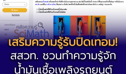 Blogครู-อาจารย์นักเรียน เสริมความรู้รับปิดเทอม! สสวท. ชวนทำความรู้จักน้ำมันเชื้อเพลิงรถยนต์ ผ่านคลัง SciMath ฟรี! EZ Webmaster March 20, 2026 ท่ามกลางสถานการณ์ราคาน้ำมันที่ผันผวนและมีแนวโน้มสูงขึ้นจากปัจจัยด้านพลังงานโลกทั้งการเปลี่ยนแปลงของตลาดพลังงาน นโยบายสิ่งแวดล้อม และสถานการณ์ระหว่างประเทศที่กระทบต่อการผลิตและขนส่งน้ำมัน ซึ่งส่งผลต่อค่าครองชีพและการใช้ชีวิตในปัจจุบัน สถาบันส่งเสริมการสอนวิทยาศาสตร์และเทคโนโลยี (สสวท.) ชวนเยาวชน ครู และประชาชนทั่วไป เรียนรู้และทำความรู้จักน้ำมันเชื้อเพลิงที่ใช้กับรถยนต์ ผ่านคลังความรู้ SciMath สสวท. ที่อธิบายตั้งแต่ประเภทของน้ำมันเชื้อเพลิง ซึ่งมีคุณสมบัติแตกต่างกันตามลักษณะการเผาไหม้ของเครื่องยนต์ รวมถึงเชื้อเพลิงทางเลือกอย่างแก๊สโซฮอล์ ที่เป็นการผสมเอทานอลกับน้ำมันเบนซินในสัดส่วนต่าง ๆ ตลอดจนแนวทางการเลือกใช้เชื้อเพลิงให้เหมาะสมกับรถยนต์แต่ละประเภท เนื้อหาเข้าใจง่าย เชื่อมโยงกับชีวิตประจำวัน ช่วยเสริมความรู้ด้านวิทยาศาสตร์พลังงานและการใช้ทรัพยากรอย่างรู้คุณค่า…
