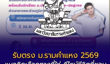 Blogนักเรียนมหาวิทยาลัย ม.รามคำแหง เปิดรับนักศึกษาใหม่ทั่วประเทศ ปี 2569 ชูแนวคิด “เลือกทางที่ใช่ ดีไซน์ชีวิตที่ชอบ” EZ Webmaster March 19, 2026 🎓 ม.รามคำแหง เปิดรับนักศึกษาใหม่ทั่วประเทศ ปี 2569 ชูแนวคิด “เลือกทางที่ใช่ ดีไซน์ชีวิตที่ชอบ” มหาวิทยาลัยรามคำแหง เปิดรับสมัครนักศึกษาใหม่ระดับปริญญาตรี ภาค 1 ปีการศึกษา 2569 อย่างเป็นทางการ ภายใต้แนวคิด…