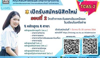 นักเรียน มหาวิทยาลัยเกษตรศาสตร์ วิทยาเขตเฉลิมพระเกียรติ จังหวัดสกลนคร เปิดรับสมัครนิสิตใหม่ รอบที่ 2 โควตาภาคตะวันออกเฉียงเหนือและโรงเรียนเครือข่าย EZ Webmaster March 13, 2021 มหาวิทยาลัยเกษตรศาสตร์ วิทยาเขตเฉลิมพระเกียรติ จังหวัดสกลนครเปิดรับสมัครนิสิตใหม่ ในระดับปริญญาตรี TCAS 64 รอบที่ 2 คณะศิลปศาสตร์และวิทยาการจัดการ มหาวิทยาลัยเกษตรศาสตร์ วิทยาเขตเฉลิมพระเกียรติ จังหวัดสกลนคร โควตาภาคตะวันออกเฉียงเหนือและโรงเรียนเครือข่าย เปิดรับสมัคร ตั้งแต่วันที่ 1…