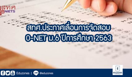 นักเรียน สทศ.ประกาศเลื่อนการจัดสอบ O-NET ม.6 ปีการศึกษา 2563 EZ Webmaster March 12, 2021 เมื่อวันที่ 11 มีนาคม 2564 ที่ผ่านมา ทางสำนักงานคณะกรรมการการศึกษาขั้นพื้นฐาน ได้ส่งหนังสือถึงผู้อำนวยการสำนักงานคณะกรรมการการศึกษาขั้นพื้นฐานทุกเขต เรื่อง เลื่อนกําหนดการจัดการทดสอบทางการศึกษาระดับชาติขั้นพื้นฐาน (O-NET) ชั้นมัธยมศึกษาปีที่ 6 ประจำปีการศึกษา 2563 โดยมีประกาศจากสถาบันทดสอบทางการศึกษาแห่งชาติ ดังนี้…
