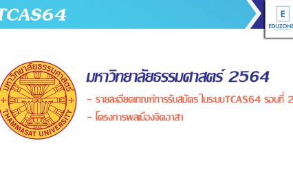 นักเรียนนักศึกษา #TCAS64 ม.ธรรมศาสตร์ เปิดรับสมัครนศ.ป.ตรี รอบที่ 2 โครงการพลเมืองจิตอาสา ตั้งแต่วันที่ 5-18 มี.ค. 64 EZ Webmaster March 14, 2021 มหาวิทยาลัยธรรมศาสตร์ เปิดรับสมัครคัดเลือกบุคคลเพื่อเข้าศึกษาต่อในระดับปริญญาตรี รอบที่ 2 โครงการพลเมืองจิตอาสา โดยจะเปิดรับสมัครตั้งแต่วันที่ 5-18 มีนาคม 2564 คณะที่เปิดรับสมัคร -คณะนิติศาสตร์ -คณะพาณิชยศาสตร์ -คณะรัฐศาสตร์ -คณะเศรษฐศาสตร์ -คณะสังคมสงเคราะห์…