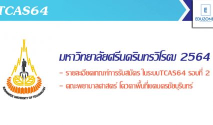 นักเรียนนักศึกษา #TCAS64 พยาบาลศาสตร์ ม.เทคโนโลยีสุรนารี เปิดรับสมัครนศ.ป.ตรี รอบที่ 2 โควตา ตั้งแต่วันที่ 10 มี. ค. -17 เม.ย. 64 EZ Webmaster March 14, 2021 มหาวิทยาลัยเทคโนโลยีสุรนารี เปิดรับสมัครบุคคลเพื่อเข้าศึกษาต่อในระดับปริญญาตรี สาขาวิชาพยาบาลศาสตร์ รอบที่ 2 โควตาพื้นที่เขตนครชัยบุรินทร์ (นครราชสีมา บุรีรัมย์ ชัยภูมิ และสุรินทร์) โดยจะเปิดรับสมัครตั้งแต่วันที่ 10 มีนาคม – เมษายน 2564…