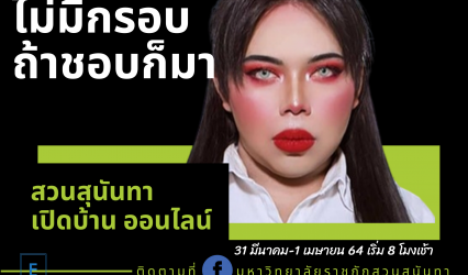 Blogนักเรียน มหกรรมเปิดบ้านออนไลน์ “สวนสุนันทา” จัดใหญ่ครั้งแรก แจกทุกข้อมูล เต็มอิ่มแน่นอน tui sakrapee March 4, 2021 “สวนสุนันทา” พร้อมเปิดทุกซอกทุกมุมบ้านให้น้อง ๆ นักเรียนม.ปลายที่ต้องการเข้าเรียนต่อได้ซักถามข้อมูลทุกด้าน ในมหกรรมเปิดบ้านสวนสุนันทาออนไลน์ ครั้งที่ 1 เพื่อรองรับการรับสมัครทีแคส รอบ 2 โควตา ซึ่งยังมีน้อง ๆ จำนวนมากสงสัยและคาใจในหลาย ๆ เรื่อง…