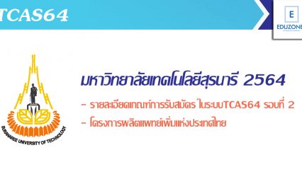 นักเรียนนักศึกษา #TCAS64 ม.เทคโนโลยีสุรนารี เปิดรับสมัครนศ.ป.ตรี โครงการผลิตแพทย์เพิ่ม ตั้งแต่วันที่ 10-19 มี.ค. 64 EZ Webmaster March 4, 2021 มหาวิทยาลัยเทคโนโลยีสุรนารี เปิดรับสมัครบุคคลเพื่อเข้าศึกษาต่อในระดับปริญญาตรี หลักสูตรแพทยศาสตรบัณฑิต โครงการผลิตแพทย์เพิ่มแห่งประเทศไทย รอบที่ 2 โควตาพื้นที่ โดยจะเปิดรับสมัครตั้งแต่วันที่ 10-19 มีนาคม 2564 จำนวนรับ -34 ที่นั่ง …