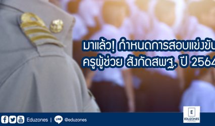 ครู-อาจารย์ มาแล้ว! กำหนดการสอบแข่งขันครูผู้ช่วย สังกัด สพฐ. ปี 2564 EZ Webmaster February 24, 2021 เมื่อวันที่ 23 กุมภาพันธ์ 2564 ทางสำนักงานคณะกรรมการการศึกษาขั้นพื้นฐาน (สพฐ.) ได้ส่งหนังสือถึงผู้อำนวยการสำนักงานเขตพื้นที่การศึกษา เรื่อง การสอบแข่งขันฯ ตำแหน่งครูผู้ช่วย สังกัดสำนักงานคณะกรรมการการศึกษาขั้นพื้นฐาน ปี พ.ศ. 2564 ซึ่งขณะนี้ทาง สพฐ.ได้กำหนดการสอบแข่งขันเพื่อบรรจุและแต่งตั้งบุคคลเข้ารับราชการเป็นข้าราชการครูและบุคลากรทางการศึกษา…