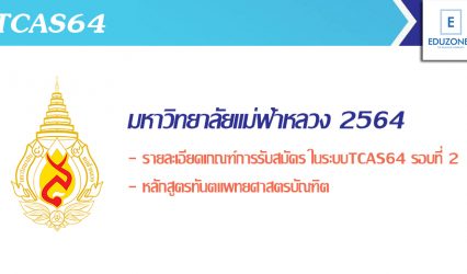 นักเรียนนักศึกษา #TCAS64 ทันตแพทย์ ม.แม่ฟ้าหลวง เปิดรับสมัครนศ.ป.ตรี รอบที่ 2 โควตา 17 จังหวัดภาคเหนือ ตั้งแต่วันที่ 1-15 มี.ค. 64 EZ Webmaster February 17, 2021 หลักสูตรทันตแพทยศาสตรบัณฑิต มหาวิทยาลัยแม่ฟ้าหลวง เปิดรับสมัครคัดเลือกบุคคลเพื่อเข้าศึกษาต่อในระดับปริญญาตรี รอบที่ 2 โควตา 17 จังหวัดภาคเหนือ ประจำปีการศึกษา 2564 โดยจะเปิดรับสมัครตั้งแต่วันที่ 1-15 มีนาคม 2564 จำนวนรับ…