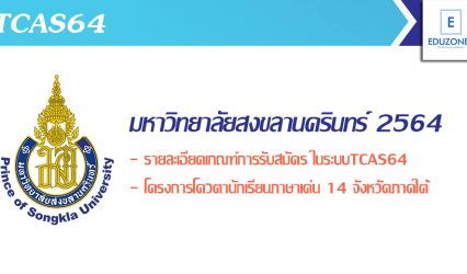 นักเรียนนักศึกษา #TCAS64 ม.สงขลานครินทร์ เปิดรับสมัครนศ.ป.ตรี โครงการนร.เด่นภาษาภาคใต้ ตั้งแต่วันที่ 3-30 มี.ค. 64 EZ Webmaster February 17, 2021 มหาวิทยาลัยสงขลานครินทร์ วิทยาลัยภูเก็ต เปิดรับสมัครคัดเลือกบุคคลเพื่อเข้าศึกษาต่อในระดับปริญญาตรี โครงการโควตานักเรียนภาษาเด่น 14 จังหวัดภาคใต้ ประจำปีการศึกษา 2564 รอบที่ 2 โดยจะเปิดรับสมัครตั้งแต่วันที่ 3-30 มีนาคม 2564 คณะ/สาขาวิชาที่เปิดรับสมัคร…