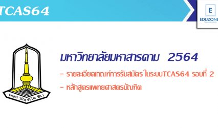 นักเรียนนักศึกษา #TCAS64 ม.มหาสารคาม เปิดรับสมัครนศ.ป.ตรี รอบที่ 2 หลักสูตรแพทยศาสตรบัณฑิต รุ่นที่ 16 ตั้งแต่วันที่ 18 ม.ค. 64 – 26 ก.พ. 64 EZ Webmaster February 17, 2021 มหาวิทยาลัยมหาสารคาม เปิดรับสมัครคัดเลือกบุคคลเพื่อเข้าศึกษาต่อในระดับปริญญาตรี รอบที่ 2 หลักสูตรแพทยศาสตรบัณฑิต รุ่นที่ 16 โดยจะเปิดรับสมัครตั้งแต่วันที่ 18 มกราคม – 26 กุมภาพันธ์ 2564 จำนวนรับ…