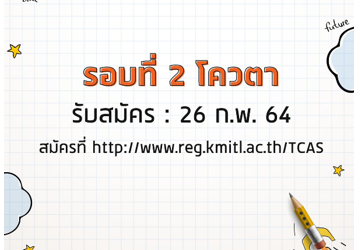 นักเรียน สจล. เตรียมเปิดรับ TCAS 64 รอบโควตา จากหลากหลายคณะฯ EZ Webmaster February 13, 2021 สถาบันเทคโนโลยีพระจอมเกล้าเจ้าคุณทหารลาดกระบัง (สจล.) เปิดรับสมัคร นักเรียนชั้นมัธยมศึกษาปีที่ 6 หรือเทียบเท่า เข้าศึกษาต่อในหลักสูตรระดับปริญญาตรี รอบที่ 2 โควตา ประจำปีการศึกษา 2564 โดยมีคณะต่างๆที่เปิดรับสมัคร อาทิ คณะวิศวกรรมศาสตร์ คณะครุศาสตร์อุตสาหกรรมและเทคโนโลยี คณะเทคโนโลยีการเกษตร คณะวิทยาศาสตร์ ฯลฯ ผู้สนใจสามารถตรวจสอบคุณสมบัติและสมัครได้ที่ https://www.reg.kmitl.ac.th ตั้งแต่วันที่ 26 กุมภาพันธ์…