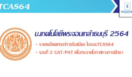 นักเรียนนักศึกษา #TCAS64 พระจอมเกล้าธนบุรี เปิดรับสมัครนศ.ป.ตรี รอบที่ 2 GAT/PAT เพื่อกระจายโอกาสทางการศึกษา ตั้งแต่วันที่ 29 มี.ค. – 22 เม.ย. 64 EZ Webmaster February 14, 2021 มหาวิทยาลัยเทคโนโลยีพระจอมเกล้าธนบุรี เปิดรับสมัครคัดเลือกบุคคลเข้าเพื่อศึกษาต่อในระดับปริญญาตรี รอบที่ 2 โครงการคัดเลือกตรงโดยใช้คะแนน GAT/PAT เพื่อกระจายโอกาสทางการศึกษา ประจำปีการศึกษา 2564 โดยจะเปิดรับสมัครตั้งแต่วันที่ 29 มีนาคม – 22 เมษายน 2564…