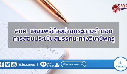 Blog ด่วน! สทศ. เผยแพร่ตัวอย่างกระดาษคำตอบการสอบประเมินสมรรถนะทางวิชาชีพครู EZ Webmaster February 15, 2021 สทศ. เผยแพร่ตัวอย่างกระดาษคำตอบการสอบประเมินสมรรถนะทางวิชาชีพครู การทดสอบและประเมินสมรรถนะทางวิชาชีพครู ด้านความรู้และประสบการณ์วิชาชีพ ตามมาตรฐานวิชาชีพครู โดยสามารถดาวน์โหลดได้ที่ : https://www.niets.or.th/th/catalog/view/3985 กำหนดการทดสอบและประเมินสมรรถนะวิชาชีพครู ที่มา : สทศ. https://www.niets.or.th/th/catalog/view/3985