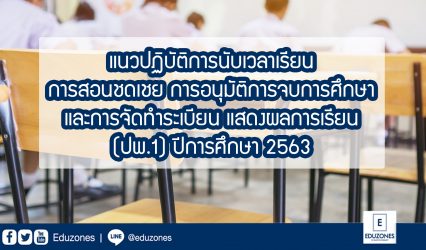 ครู-อาจารย์ สพฐ.แจ้งซักซ้อมความเข้าใจเกี่ยวกับแนวปฏิบัติการนับเวลาเรียน การสอนชดเชย การอนุมัติการจบการศึกษาและการจัดทำระเบียนแสดงผลการเรียน (ปพ.1) ปีการศึกษา 2563 EZ Webmaster January 8, 2021 เมื่อวันที่ 7 มกราคม 2564 ที่ผ่านมา ทางสำนักงานคณะกรรมการการศึกษาขั้นพื้นฐาน (สพฐ.) ได้ส่งเอกสารถึงผู้อำนวยการเขตพื้นที่การศึกษาทุกเขต เรื่อง ซักซ้อมความเข้าใจเกี่ยวกับแนวปฏิบัติการนับเวลาเรียน การสอนชดเชย การอนุมัติการจบการศึกษาและการจัดทำระเบียนแสดงผลการเรียน (ปพ.1) ปีการศึกษา 2563 โดยมีรายละเอียด…