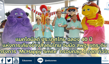 นักเรียน แมคโดนัลด์ ประเทศไทย ฉลอง 40 ปี แห่งการเคียงข้างสังคมไทย จับมือ สพฐ. ยกระดับโครงการ ‘McHappy Smile’ ครอบคลุม 4 ภาค ทั่วไทย EZ Webmaster July 1, 2025 ในโอกาสฉลองครบรอบ 40 ปี บริษัท แมคไทย จำกัด ผู้นำธุรกิจร้านอาหารบริการด่วน (QSR) ภายใต้แบรนด์ แมคโดนัลด์ ประเทศไทย เดินหน้าเคียงข้างสังคมไทย ยกระดับโครงการพัฒนาสังคม ‘McHappy Smile’ ครอบคลุม 4 ภูมิภาคทั่วไทย ด้วยการผนึกความร่วมมือกับสำนักงานคณะกรรมการการศึกษาขั้นพื้นฐาน (สพฐ.) มอบรอยยิ้ม มื้อแห่งความสุข…