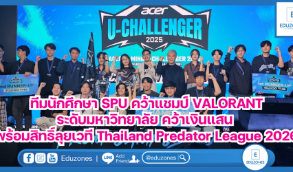 นักศึกษา ทีมนักศึกษา SPU คว้าแชมป์ VALORANT ระดับมหาวิทยาลัย คว้าเงินแสน พร้อมสิทธิ์ลุยเวที Thailand Predator League 2026 EZ Webmaster July 1, 2025 ทีมนักศึกษาคณะดิจิทัลมีเดีย สาขาการออกแบบอินเทอร์แอคทีฟและเกม มหาวิทยาลัยศรีปทุม ในนามทีม ABBACK ซึ่งประกอบด้วย นายพงศพัฒน์ ใจกระจ่าง นายกฤษดา ศิริเวช และนายอาทิตย์ มฤคทัต สามารถคว้ารางวัลชนะเลิศจากการแข่งขันเกม VALORANT รายการ Acer…