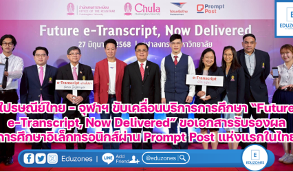 นักศึกษา ไปรษณีย์ไทย – จุฬาฯ ขับเคลื่อนบริการการศึกษายุคดิจิทัล “Future e-Transcript, Now Delivered” ขอเอกสารรับรองผลการศึกษาอิเล็กทรอนิกส์ผ่าน Prompt Post แห่งแรกในไทย EZ Webmaster July 2, 2025 บริษัท ไปรษณีย์ไทย จำกัด ร่วมกับ จุฬาลงกรณ์มหาวิทยาลัย เปิดตัวระบบ “e-Transcript” หรือใบรับรองผลการศึกษาในรูปแบบดิจิทัลผ่านแอปพลิเคชัน Prompt Post เป็นครั้งแรกในประเทศไทย ช่วยยกระดับการจัดส่งเอกสารการศึกษาให้รวดเร็ว ปลอดภัย รองรับการใช้งานได้ทุกที่ ทุกเวลา ผ่าน…