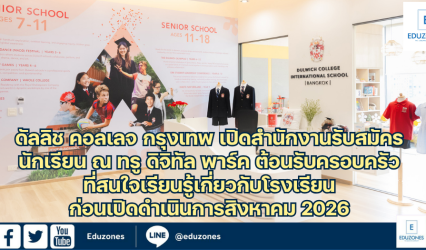 นักเรียน ดัลลิช คอลเลจ กรุงเทพ เปิดสำนักงานรับสมัครนักเรียน ณ ทรู ดิจิทัล พาร์ค ต้อนรับครอบครัวที่สนใจเรียนรู้เกี่ยวกับโรงเรียนก่อนเปิดดำเนินการสิงหาคม 2026 EZ Webmaster July 2, 2025 หลังจากประกาศเปิดตัวอย่างเป็นทางการในประเทศไทยเมื่อไม่นานมานี้ โรงเรียนนานาชาติ ดัลลิช คอลเลจ กรุงเทพ (DCBK) ซึ่งเป็นโรงเรียนนานาชาติสัญชาติอังกฤษระดับแนวหน้า ได้รับการตอบรับอย่างอบอุ่นจากทั้งครอบครัวชาวไทยและชาวต่างชาติที่แสดงความสนใจเป็นอย่างมาก ก่อนการเปิดดำเนินการอย่างเป็นทางการในเดือนสิงหาคม พ.ศ. 2569 โรงเรียนนานาชาติ ดัลลิช คอลเลจ กรุงเทพ ได้จัดพิธีเปิดสำนักงานรับสมัครนักเรียน…