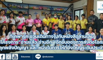 นักเรียน ทีเคพาร์ค ชวนเดินทางไปกับหนังสือล้านเล่มในโครงการ”อ่านแล้ว อ่านอีก” อีกขั้นของการส่งต่อโอกาส ปลุกพลังปัญญา และ “หนึ่งในการให้ที่ยิ่งใหญ่ระดับประเทศ” EZ Webmaster July 2, 2025 ครูไทยในพื้นที่ห่างไกลร่วมถ่ายทอดพลังของ “อ่านแล้วอ่านอีก” กลไกเพื่อ “การเรียนรู้ที่ไม่เหลื่อมล้ำ” ในทุกพื้นที่ทั่วประเทศ แม้ตัวเลขจากผลสำรวจปี 2568 จะชี้ให้เห็นว่าคนไทยอายุ 7 ปีขึ้นไปมีอัตราการรู้หนังสือสูงถึง 98.83% สูงสุดในอาเซียน และอยู่ในอันดับที่ 37 ของโลก ซึ่งเป็นความภาคภูมิใจที่สะท้อนถึงความพยายามในการพัฒนาการศึกษาของประเทศ แต่เบื้องหลังสถิติอันน่าชื่นชมนี้ ยังคงมี “ช่องว่างแห่งโอกาส” ที่สำคัญและไม่อาจมองข้ามได้ เพราะในอีกด้านหนึ่งของประเทศ ยังคงมีเด็กและเยาวชนจำนวนมากที่เติบโตท่ามกลางข้อจำกัด เผชิญกับความเหลื่อมล้ำทางการศึกษา ขาดแคลนหนังสือและสื่อการเรียนรู้ดี…