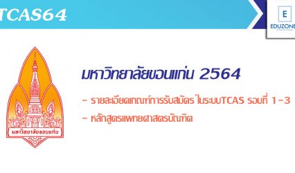 นักศึกษานักเรียน #TCAS64 หลักสูตรแพทยศาสตรบัณฑิต ม.ขอนแก่น เปิดรับสมัครนศ.ป.ตรี รอบที่ 1-3 ตั้งแต่วันที่ 1 ธ.ค. 63 – 15 พ.ค. 64 EZ Webmaster December 8, 2020 หลักสูตรแพทยศาสตรบัณฑิต มหาวิทยาลัยขอนแก่น เปิดรับสมัครคัดเลือกบุคคลเพื่อเข้าศึกษาต่อในระดับปริญญาตรี รอบที่ 1-3 โดยจะเปิดรับสมัคร ตั้งแต่วันที่ 1 ธันวาคม 2563 – 15 พฤษภาคม 2564 โครงการและจำนวนรับ…