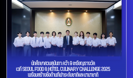 Blogนักศึกษา นักศึกษาสวนสุนันทา คว้า 9 เหรียญรางวัลเวที Seoul Food & Hotel Culinary Challenge 2025 พร้อมสร้างชื่อด้านกีฬาระดับชาติและนานาชาติ tui sakrapee June 26, 2025 คว้าชัยแดนกิมจิ! นักศึกษา #คหกรรม สวนสุนันทา คว้า 9 รางวัลเวที Seoul Food & Hotel Culinary Challenge 2025 มหาวิทยาลัยราชภัฏสวนสุนันทา ขอแสดงความยินดีกับนักศึกษาสาขาวิชาคหกรรมศาสตร์…