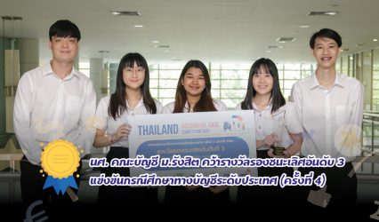 นักเรียนนักศึกษา นศ. บัญชี ม.รังสิต คว้ารางวัลรองชนะเลิศอันดับ 3 แข่งขันกรณีศึกษาทางบัญชีฯ ครั้งที่ 4 EZ Webmaster September 24, 2020 นักศึกษาคณะบัญชี ม.รังสิต คว้ารางวัลรองชนะเลิศอันดับ 3 การแข่งขันกรณีศึกษาทางบัญชีระดับประเทศ ครั้งที่ 4 (Thailand Accounting Case Competition 2020) ได้รับโล่และเงินรางวัลจำนวน 15,000 บาท จัดโดย…
