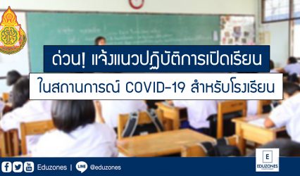 ครู-อาจารย์นักเรียน ด่วน! แจ้งแนวปฏิบัติการเปิดเรียน ในสถานการณ์ COVID-19 สำหรับโรงเรียน EZ Webmaster June 24, 2020 เมื่อวันที่ 24 มิถุนายน 2563 ที่ผ่านมา ทางสำนักงานคณะกรรมการการศึกษาขั้นพื้นฐาน ได้แจ้งหนังสือถึง ผู้อำนวยการสำนักงานเขตพื้นที่การศึกษาประถมศึกษาและมัธยมศึกษา เรื่อง แจ้งแนวทางของศูนย์บริหารสถานการณ์การแพร่ระบาดของโรคติดเชื้อไวรัสโคโรนา 2019 สำหรับสถานศึกษาในสังกัดสำนักงานคณะกรรมการการศึกษาขั้นพื้นฐาน โดยมีรายละเอียดและแนวทางการดำเนินการ ดังนี้ …