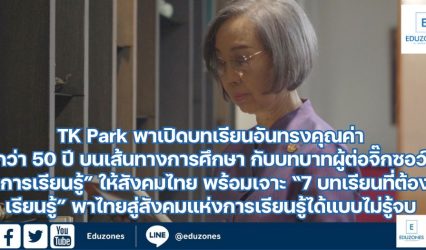 นักเรียน TK Park พาเปิดบทเรียนอันทรงคุณค่า จาก “คุณหญิงกษมา” กว่า 50 ปี บนเส้นทางการศึกษา กับบทบาทผู้ต่อจิ๊กซอว์ “การเรียนรู้” ให้สังคมไทย พร้อมเจาะ “7 บทเรียนที่ต้องเรียนรู้” พาไทยสู่สังคมแห่งการเรียนรู้ได้แบบไม่รู้จบ EZ Webmaster June 13, 2025 หากย้อนกลับไปเมื่อหลายสิบปีก่อน ภาพจำของห้องสมุดในสายตาคนไทยมักเป็นพื้นที่เคร่งขรึม คร่ำเคร่ง และเป็นทางการ กระทั่งในปี 2548 การก่อตั้ง สถาบันอุทยานการเรียนรู้ TK Park ได้กลายเป็นจุดเปลี่ยนสำคัญ ด้วยแนวคิด “ห้องสมุดมีชีวิต” ที่เปลี่ยนห้องสมุดให้เป็นพื้นที่แห่งการเรียนรู้ที่สนุก สร้างสรรค์ และมีชีวิตชีวา ทั้งยังจุดประกายให้สังคมไทยเริ่มมองการเรียนรู้นอกห้องเรียนอย่างจริงจัง …