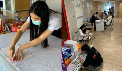 นักศึกษา นศ.คณะบัญชีหอการค้าไทยวางเครื่องคิดเลข หยิบเข็มเย็บหน้ากากมอบบุคลากรการแพทย์ EZ Webmaster April 9, 2020 จากภาวะโรคระบาดโควิด – 19 อย่างหนักทั่วโลก ทำให้หลายประเทศเกิดภาวะคลาดแคลนหน้ากากอนามัยอย่างมาก ประเทศไทยก็เช่นเดียวกันที่บุคลากรทางด้านการแพทย์ สาธารณสุขประสบปัญหาขาดแคลนหน้ากากอนามัย จากปัญหาเหล่านี้นักศึกษาคณะบัญชี มหาวิทยาลัยหอการค้าไทยจึงได้รีบดำเนินการโครงการทำหน้ากากอนามัยเพื่อบุคลากรทางการแพทย์และประชาชนที่ขาดคลาน โดยนักศึกษาทุกคนพักจากการเรียนบัญชีหรือใช้เครื่องคิดเลขทำงานด้านบัญชี ลุกขึ้นมาหยิบอุปกรณ์เข็ม ด้าย กรรไกรเย็บหน้ากากอนามัยส่งต่อให้คนในประเทศไทย นายยงยศ งาต้น (น้องหมี)…