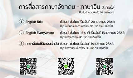 นักศึกษานักเรียน มทร.พระนคร เปิดคอร์สออนไลน์ สอนฟุตฟิตฟอไฟ EZ Webmaster April 8, 2020 มหาวิทยาลัยเทคโนโลยีราชมงคลพระนคร เปิดอบรมหลักสูตรระยะสั้นด้านภาษาต่างประเทศ (อังกฤษ – จีน) ฟรีไม่เสียค่าใช้จ่าย โดยอาจารย์ผู้เชี่ยวชาญ จากคณะศิลปศาสตร์ ซึ่งเปิดการเรียนการสอนผ่านระบบออนไลน์ จำนวน 3 หลักสูตร ได้แก่ 1.ภาษาอังกฤษ “English Talk”…
