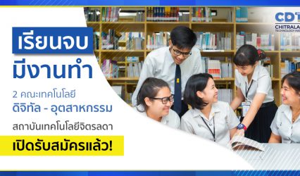 นักเรียน เรียนจบ มีงานทำ สถาบันเทคโนโลยีจิตรลดา เปิดรับ 2 คณะ เทคโนโลยีดิจิทัล – อุตสาหกรรม ตอบโจทย์ความต้องการของผู้ประกอบการและอุตสาหกรรม EZ Webmaster April 7, 2020 เรียนคู่งาน-งานคู่เรียน คอนเส็ปต์โดนใจจากสถาบันเทคโนโลยีจิตรลดา (สจด.) (Chitralada Technology Institute, CDTI) สถาบันอุดมศึกษาในกำกับของรัฐ ที่เปิดกว้างให้บุคคลทั่วไป เข้าสมัครเรียนต่อ ในระดับประกาศนียบัตร (ปวช.) ประกาศนียบัตรวิชาชีพ (ปวส.) และปริญญาตรี สถาบันเทคโนโลยีจิตรลดา…
