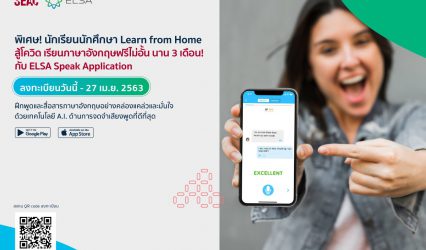 นักเรียนนักศึกษา SEAC ส่งแคมเปญให้เด็กไทยฝึกภาษาอังกฤษฟรี! ผ่านสุดยอด AI แอพพลิเคชั่น “ELSA Speak” Upskill ต่อเนื่องท่ามกลางสถานการณ์ COVID-19 EZ Webmaster April 7, 2020 SEAC (เอสอีเอซี) ศูนย์พัฒนาและส่งเสริมการเรียนรู้ตลอดชีวิตแห่งภูมิภาคอาเซียน เดินหน้าตอกย้ำพันธกิจ EMPOWER LIVING เติมเต็มทุกเป้าหมายของการใช้ชีวิตให้สมบูรณ์แบบผ่านการเรียนรู้และพัฒนาอย่างต่อเนื่องตลอดชีวิต ผนึก ELSA สตาร์ทอัพชื่อดังจากซิลิคอน แวลลีย์ ผู้คิดค้น ELSA Speak สุดยอด AI แอพพลิเคชั่นฝึกการพูดภาษาอังกฤษ ส่งแคมเปญเพื่อสังคมให้นักเรียนระดับชั้นประถมศึกษาปีที่ 1 จนถึงนิสิต นักศึกษาระดับปริญญาตรี Upskill เรียนภาษาอังกฤษฟรี 3 เดือน ส่งตรงกว่า 1600+ บทเรียนการฝึกออกเสียงภาษาอังกฤษ เพื่อกระตุ้นเด็กไทยเรียนรู้อย่างต่อเนื่องภายใต้สถานการณ์ COVID-19 นางอริญญา เถลิงศรี กรรมการผู้จัดการ SEAC (Southeast Asia Center) ศูนย์พัฒนาและส่งเสริมการเรียนรู้ตลอดชีวิตแห่งภูมิภาคอาเซียน กล่าวว่า “SEAC เชื่อมั่นในเรื่องการเรียนรู้ตลอดชีวิตมาโดยตลอด…