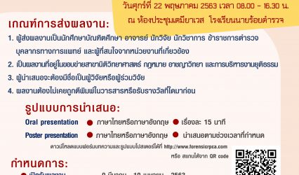 กิจกรรม รร.นายร้อยตำรวจ เปิดรับผลงานวิจัย วิชาการ ภายใต้หัวข้อ “วิจัย เทคโนโลยี และนวัตกรรม เพื่องานยุติธรรมล้ำสมัย” EZ Webmaster March 17, 2020 ขอเชิญผู้สนใจส่งผลงานวิจัย วิชาการ เพื่อเข้าร่วมประชุมวิชาการและนำเสนอผลงานวิจัยระดับชาติ สาขานิติวิทยาศาสตร์ กฎหมาย อาชญาวิทยา และการบริหารงานยุติธรรม ภายใต้หัวข้อ “วิจัย เทคโนโลยี และนวัตกรรม เพื่องานยุติธรรมล้ำสมัย” ซึ่งจัดขึ้นในวันศุกร์ที่ 22 พฤษภาคม 2563 เวลา 08.00-16.30 น. ณ ห้องประชุมเตมียาเวส โรงเรียนนายร้อยตำรวจ สำหรับผู้ที่สนใจสามารถลงทะเบียนเข้าร่วมประชุมและส่งบทความได้…