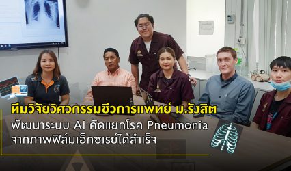 นักศึกษา ทีมวิจัยวิศวกรรมชีวการแพทย์ ม.รังสิต พัฒนาระบบ AI คัดแยกโรค Pneumonia จากภาพฟิล์มเอ็กซเรย์ได้สำเร็จ EZ Webmaster March 9, 2020 ทีมวิจัยวิทยาลัยวิศวกรรมชีวการแพทย์ ม.รังสิต พัฒนาระบบ AI เพื่อการคัดแยกโรค Pneumonia จากภาพฟิล์มเอ็กซเรย์ได้สำเร็จ มีความถูกต้องในการทำนายรอยโรค Pneumonia 87.5 เปอร์เซ็นต์ ทำนายรอยโรคจากภาพเอ็กซเรย์ที่ปอดจากโรค COVID-19 จำนวน 5 ภาพ…