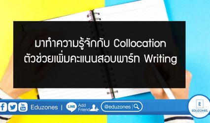 Blog มาทำความรู้จักกับ Collocation ตัวช่วยเพิ่มคะแนนสอบพาร์ท Writing EZ Webmaster March 9, 2020 สำหรับคนที่กำลังเตรียมตัวสอบ TOEFL IELTS หรือข้อสอบวัดระดับภาษาที่ต้องมีการวัดทักษะการเขียนภาษาอังกฤษ อย่างพาร์ท writing นั้นก็อาจประสบปัญหากับการต้องเขียน essay ในข้อสอบ ที่ไม่รู้ว่าจะเขียนอย่างไรถึงดีจนสามารถพิชิตคะแนนในพาร์ทนี้มาได้ วันนี้เราจึงมีเทคนิคการเพิ่มความลื่นไหลให้กับการเขียนในพาร์ท writing ด้วยการใช้ collocation มาฝากกันค่ะ …