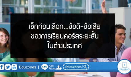 นักศึกษานักเรียน เช็กก่อนเลือก…ข้อดี-ข้อเสียของการเรียนคอร์สระยะสั้นในต่างประเทศ EZ Webmaster March 5, 2020 สำหรับคนที่มีแพลนไปจะไปเรียนภาษาที่ต่างประเทศแต่กำลังลังเลว่าควรจะไปเรียนในคอร์สระยะยาวหรือระยะสั้นดี และหากไปเรียนในคอร์สระยะสั้นนั้นจะคุ้มค่าเหมือนกับการไปเรียนในคอร์สระยะยาวหรือไม่ วันนี้เรามีข้อมูลดีๆ เกี่ยวกับคอร์สระยะสั้นสำหรับการเรียนภาษาในต่างประเทศเพื่อใช้ประกอบการตัดสินใจให้กับผู้ที่สนใจอยากไปเรียนต่อมาฝากกันค่ะ คอร์ส “ระยะสั้น” หมายถึง หลักสูตรที่มีระยะเวลาในการศึกษาอยู่ที่ 2-10 สัปดาห์ขึ้นอยู่กับหลักสูตรแต่ละหลักสูตรที่เราเลือก ซึ่งการเรียนในระยะเวลาที่สั้นๆ นี้ก็มีทั้งข้อดีและข้อเสียประกอบกัน ข้อดีของหลักสูตรคอร์สเรียนระยะสั้นในต่างประเทศ…