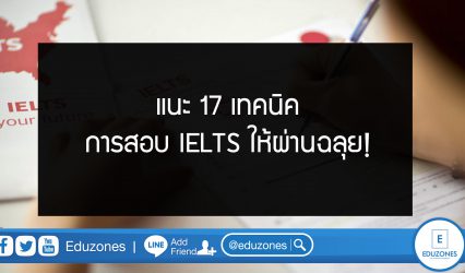 Blog แนะ 17 เทคนิคการสอบ IELTS ให้ผ่านฉลุย! EZ Webmaster February 19, 2020 การสอบ IELTS หรือ International English Language Testing System เป็นการสอบวัดระดับความสามารถทางภาษาอังกฤษในระดับสากลที่จะเป็นการวัดความสามารถทางภาษาอังกฤษทั้งหมด 4 ทักษะ ได้แก่ การฟัง การอ่าน การเขียน และการพูด…